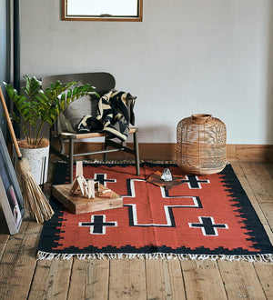 BasShuらしいネイティブモチーフに、さらっとしたインド綿を100%使用して織られたコットンラグ。